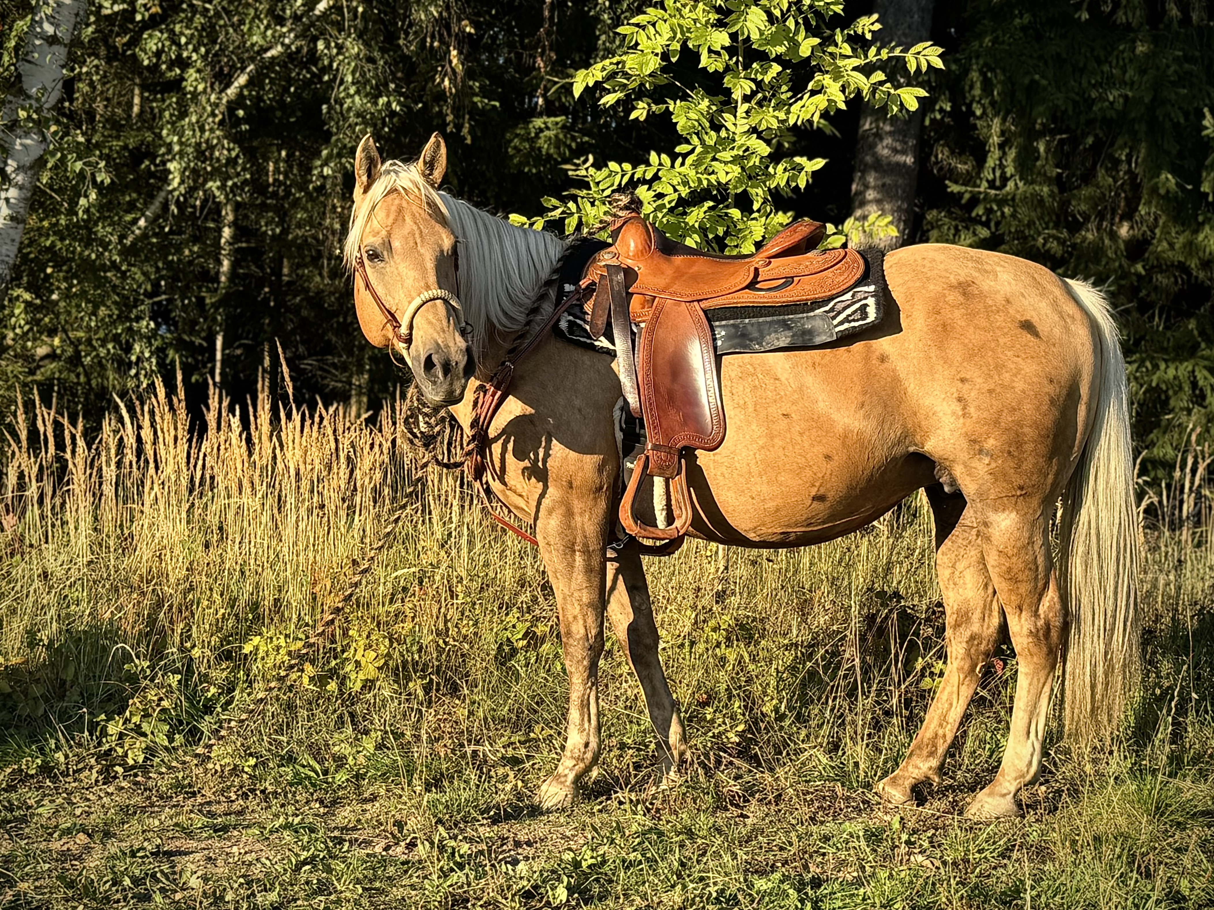 10 years old mare by Shiners Vodoo Dr, out of Custom Crome mare. 6panel test. N/N, x-rays available from september, full rideable, good for care and riding. She will be good family or child horse.