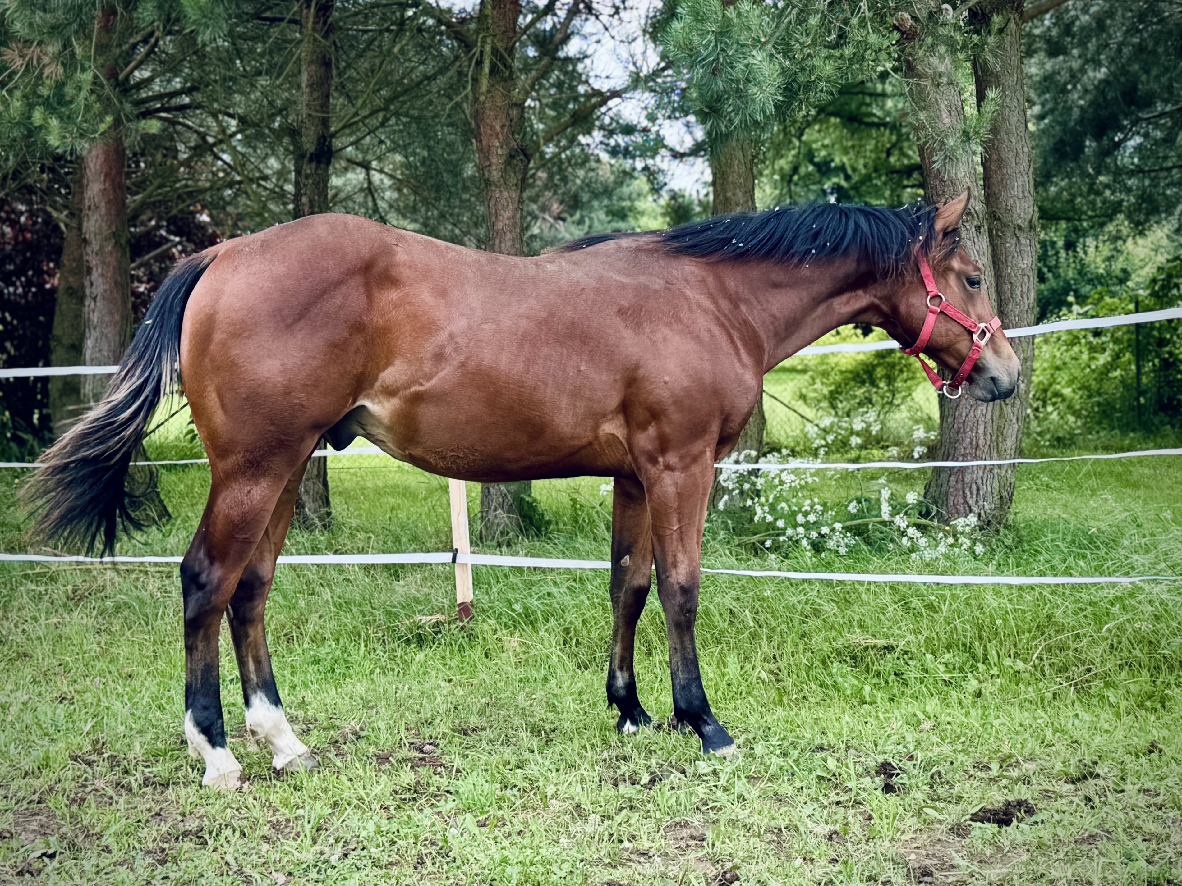 Coming 2 year old colt Moonlight Voodoo, halfbrother of Brand New Seven, by Shiners Voodoo, out of producing dam by Rowdy Yabkee/Boggies Flashy Jac, imp. from US.