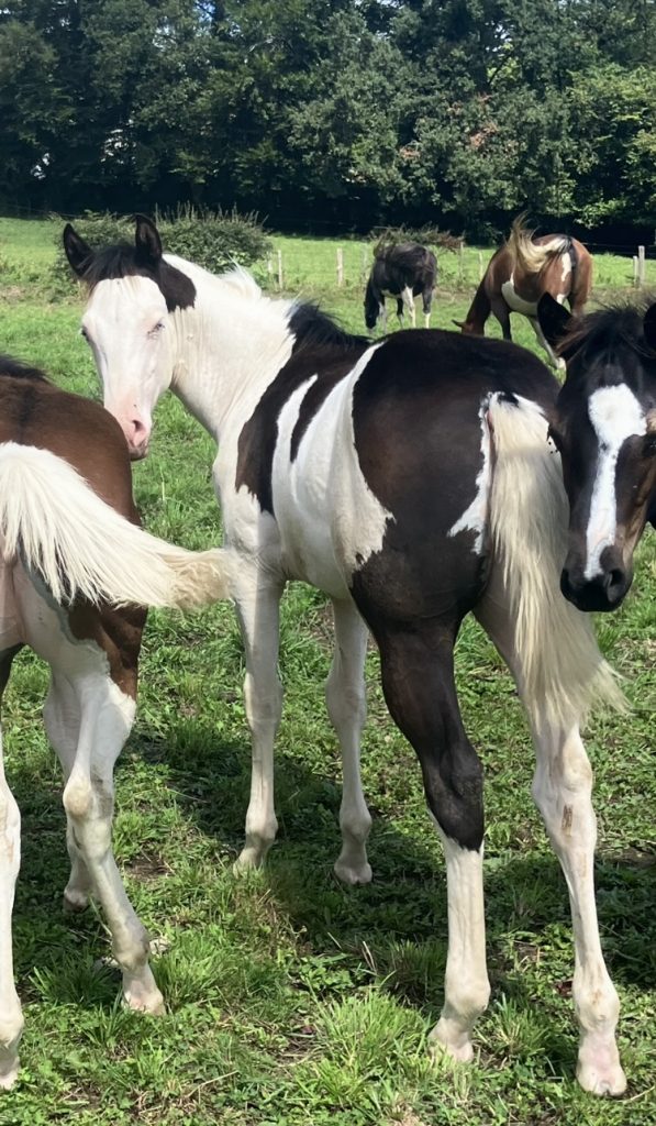 POKER SPHASHY GUN perfect foal for a breeding career, precious genetics (father from Colonels Smoking Gun Line, imported from Canada, no products yet in France/Europe), Poker is a magnificent colt with full APHA Paint horse papers, large and very muscular, future stallion’, a real tanky bomb in morphology and mentality, a really top foal, ultra respectful, cool-headed and calm, who will be tall Born on March 25, 2025, Ee aa SW1/SW1 DW20/n LWO/n, 6 panels negative pic 4 &5 mare and sire.