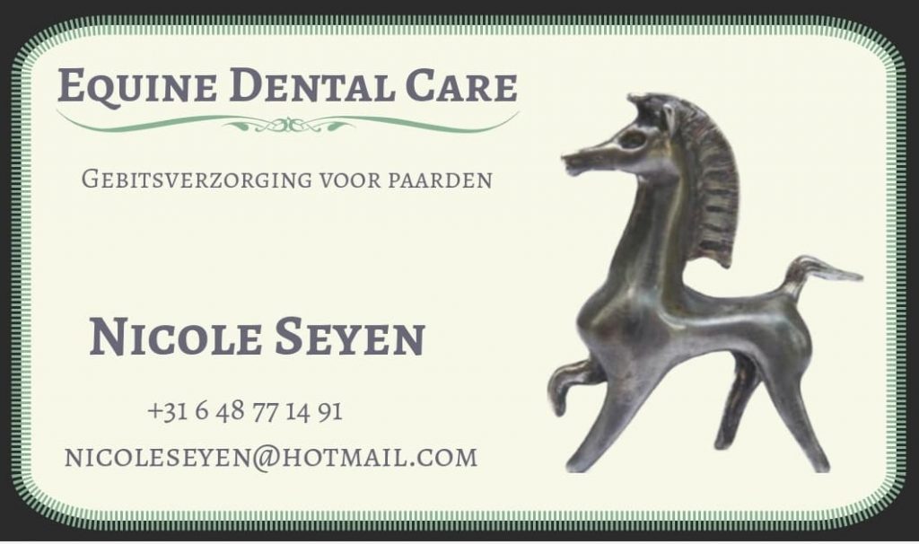 Nicole heeft haar opleiding gevolgd in de USA bij de ASED, American School for Equine Dentistry tot EqDT, (Equine Dental Technician / gebitsverzorger).